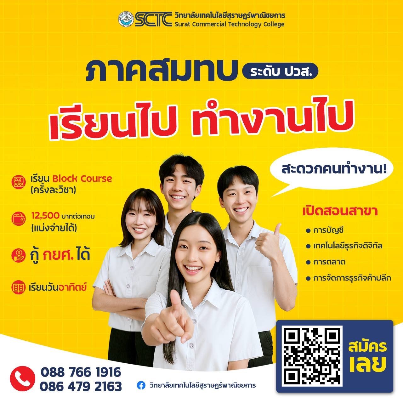 ทุนสวัสดิการ ปวส.ภาคสมทบ ได้รับส่วนลดค่าเทอม 1,500 บาท จำนวนจำกัด
