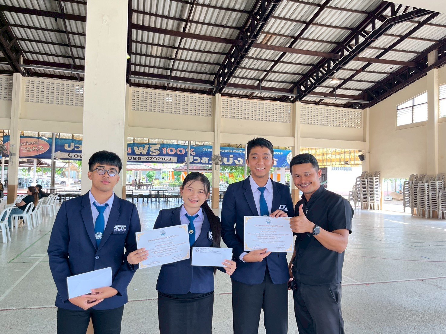 นางผจงกร ศรีไพโรจน์ ผู้อำนวยการวิทยาลัย นายรัฐภัทร์ พัฒนาศิริรักษ์ ผู้ช่วยผู้จัดการ อาจารย์ประยงค์ พรหมขจร ผู้ช่วยผู้อำนวยการฝ่ายวิชาการ ร่วมด้วย อาจารย์สมบัติ เครือสาย ผู้ช่วยผู้อำนวยการฝ่ายพัฒนาศักยภาพนักศึกษา