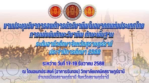 เข้าร่วมพิธีเปิด และปิด ในการประชุมวิชาการสมัยสามัญประจำปี ของสมาชิกองค์การในงานประชุมวิชาการองค์การนักวิชาชีพในอนาคตแห่งประเทศไทย ระดับจังหวัดสุราษฎร์ธานี ประจำปีการศึกษา 2568 ระหว่าง วันที่ 17-19 ธันวาคม 2568 ณ วิทยาลัยเทคนิคสุราษฎร์ธานี อำเภอ เมืองสุราษฎร์ธานี จังหวัด สุราษฎร์ธานี