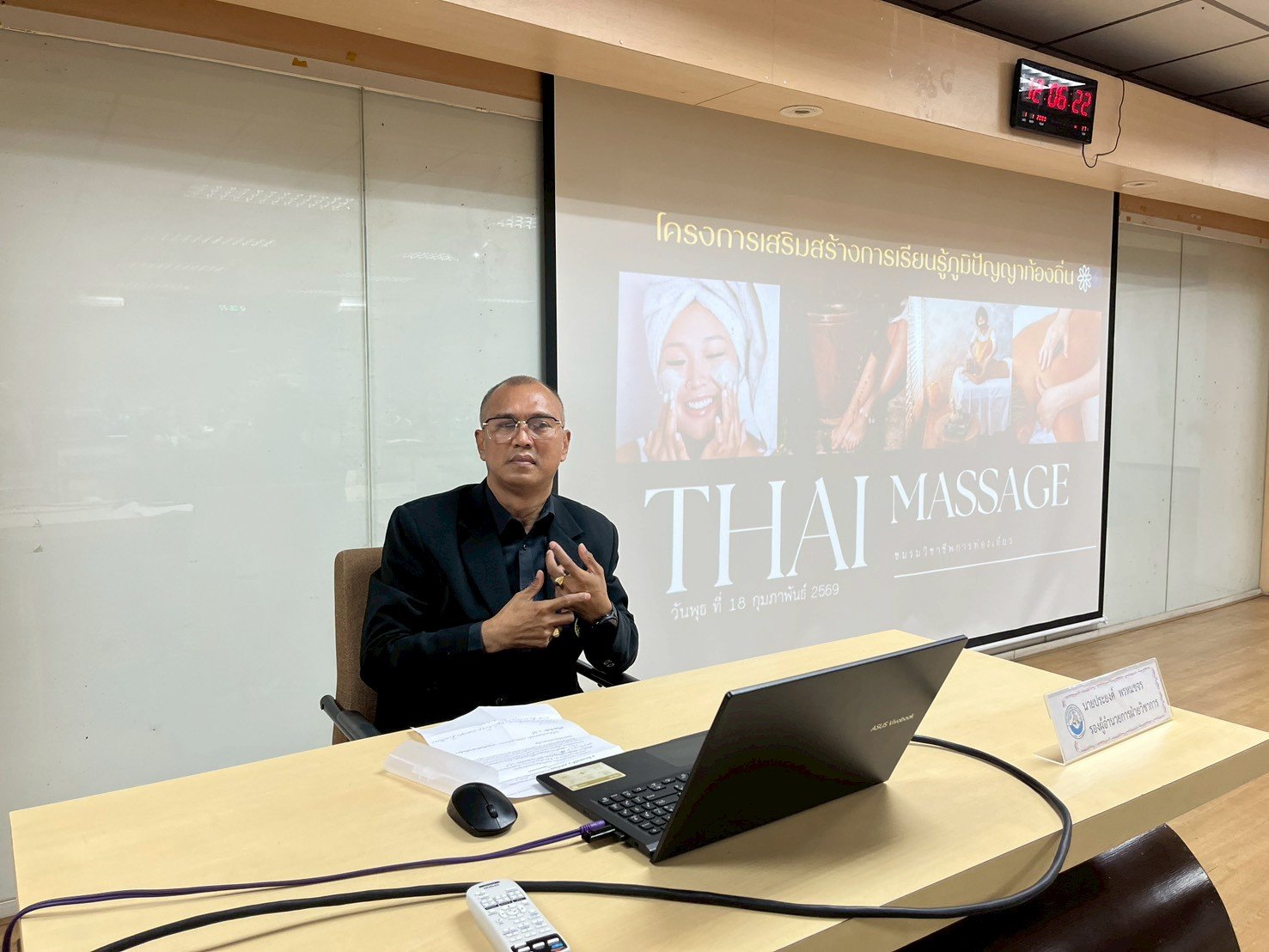 จัดโครงการเสริมสร้างการเรียนรู้ภูมิปัญญาท้องถิ่น “ นวดแผนไทย ” ให้กับนักเรียนสาขาการท่องเที่ยว